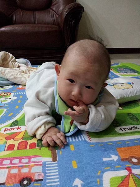 我們家寶貝四個多月了 漸漸在練習翻身,原本他習慣的沙發已經變成危險區域,因此花了些心思在找尋遊戲墊或巧拼等~~~