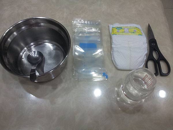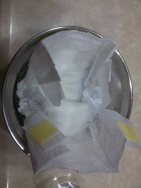 加水加入尿布中間,讓他吸飽飽